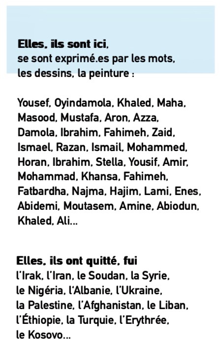 Le carnet d’Habiter l’exil ⌈→ voir le parcours⌋ : Après avoir travaillé avec des élèves exilés du Lycée professionnel de l’Acheuléen d’Amiens, le collectif La Forge* intervient dans le cadre du Programme d’Accueil et de Formation en FLE** à destination des Réfugié.es et Demandeur.es d’Asile. Exilé.es ici, ces étudiant.es, débutant.e.s ou avançé.es dans la connaissance du français s’expriment. (Mai, juin 2019)